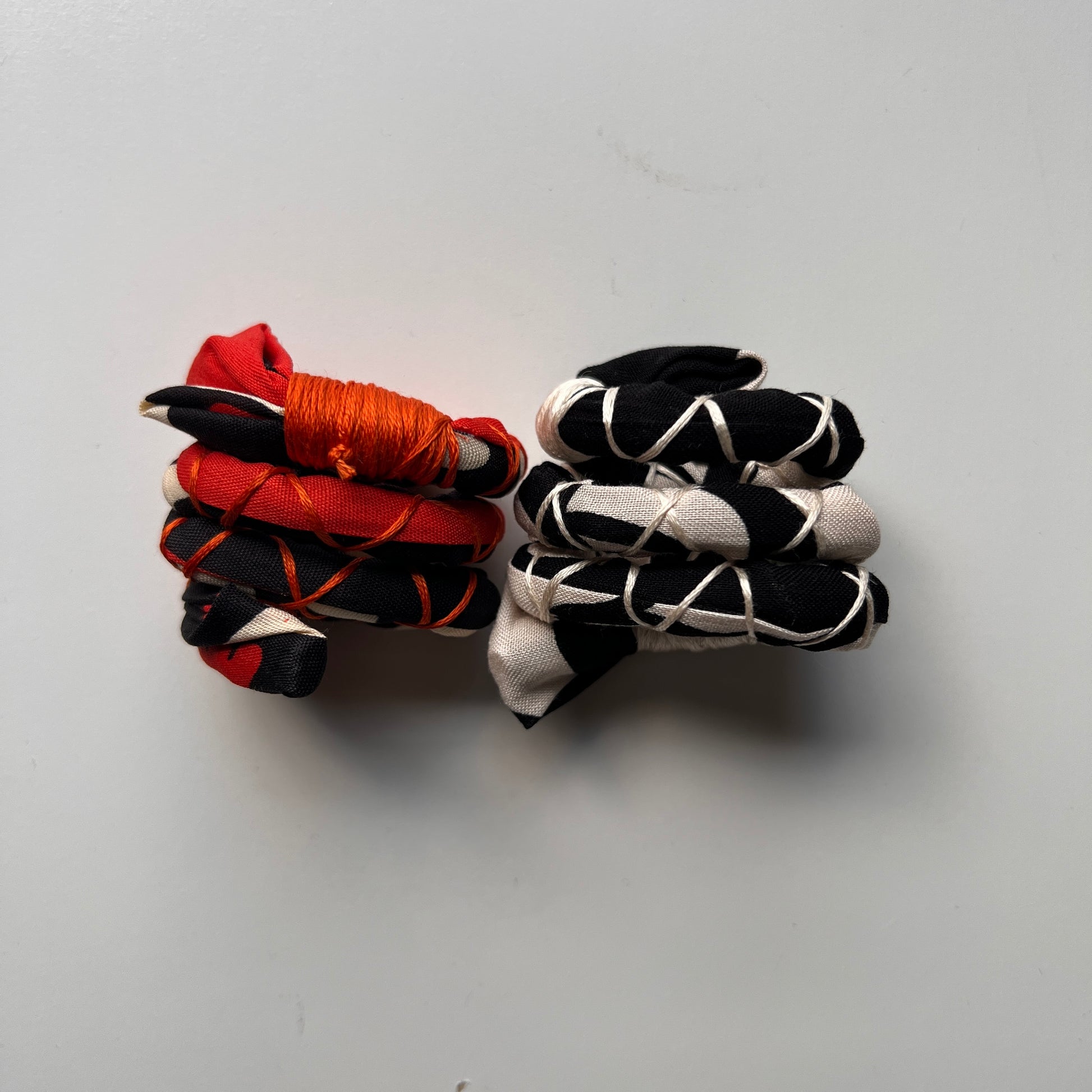 Spiral Ties help reduce the tension that traditional hair ties cause on your hair. No more headaches after a long day of wearing a hair tie. They also reduce breakage that hair ties cause upon removal. Spiral Ties are a bendable wire layered in fabric.